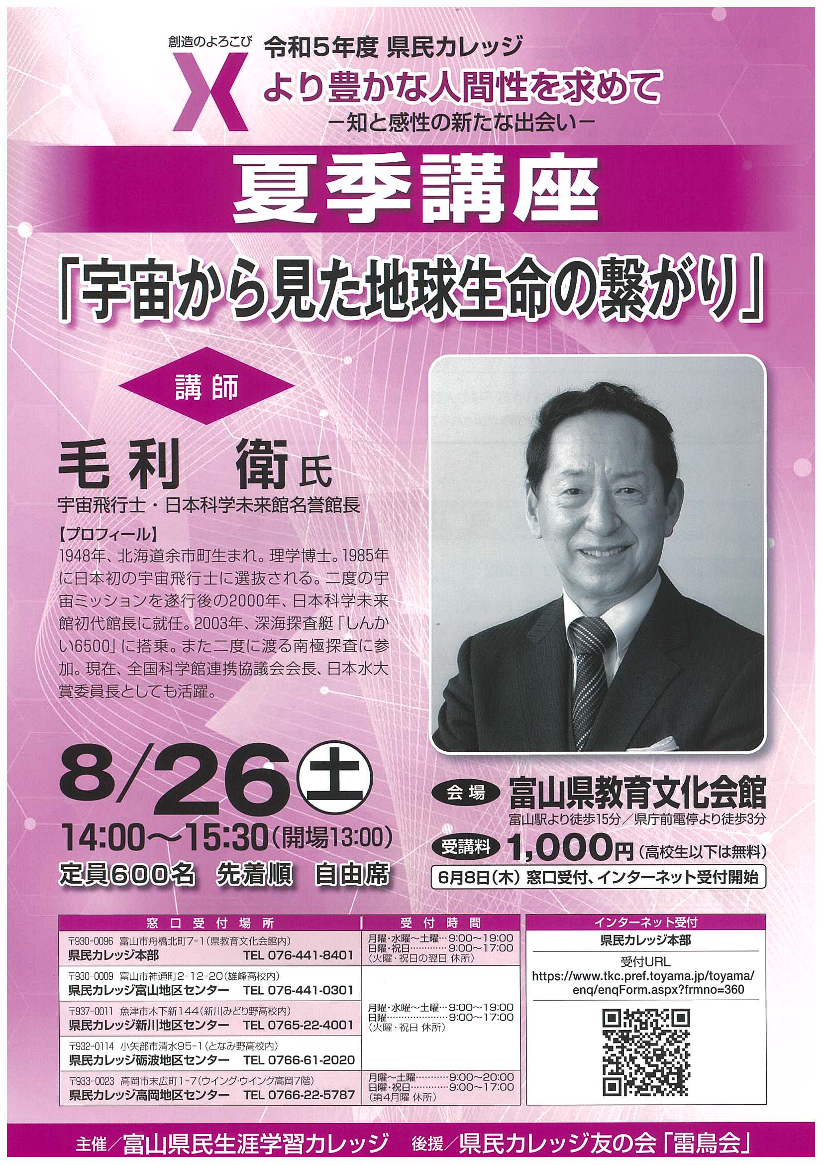 宇宙飛行士:毛利 衛さんを講師としてお迎えし、