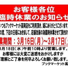 ブックマーケット高岡店臨時休業のお知らせ