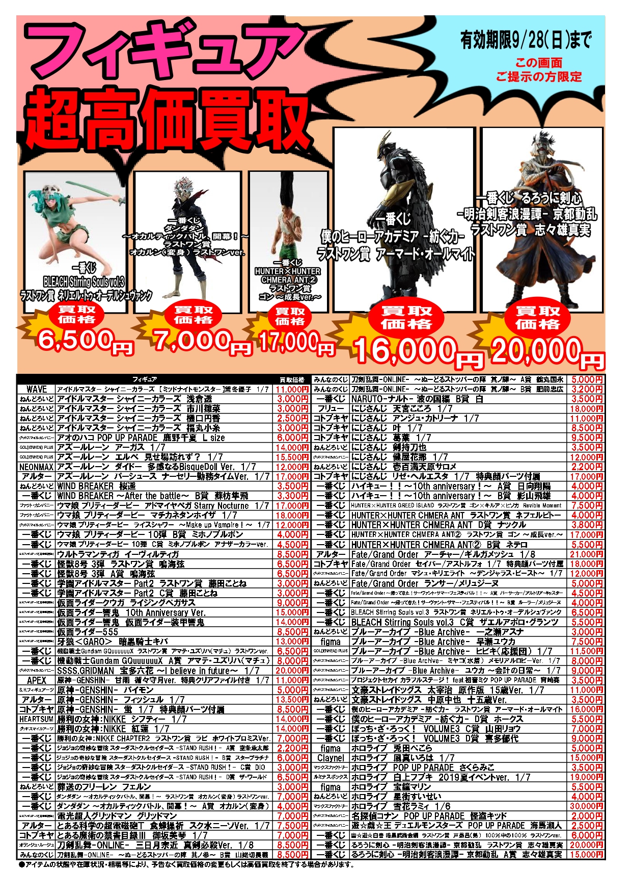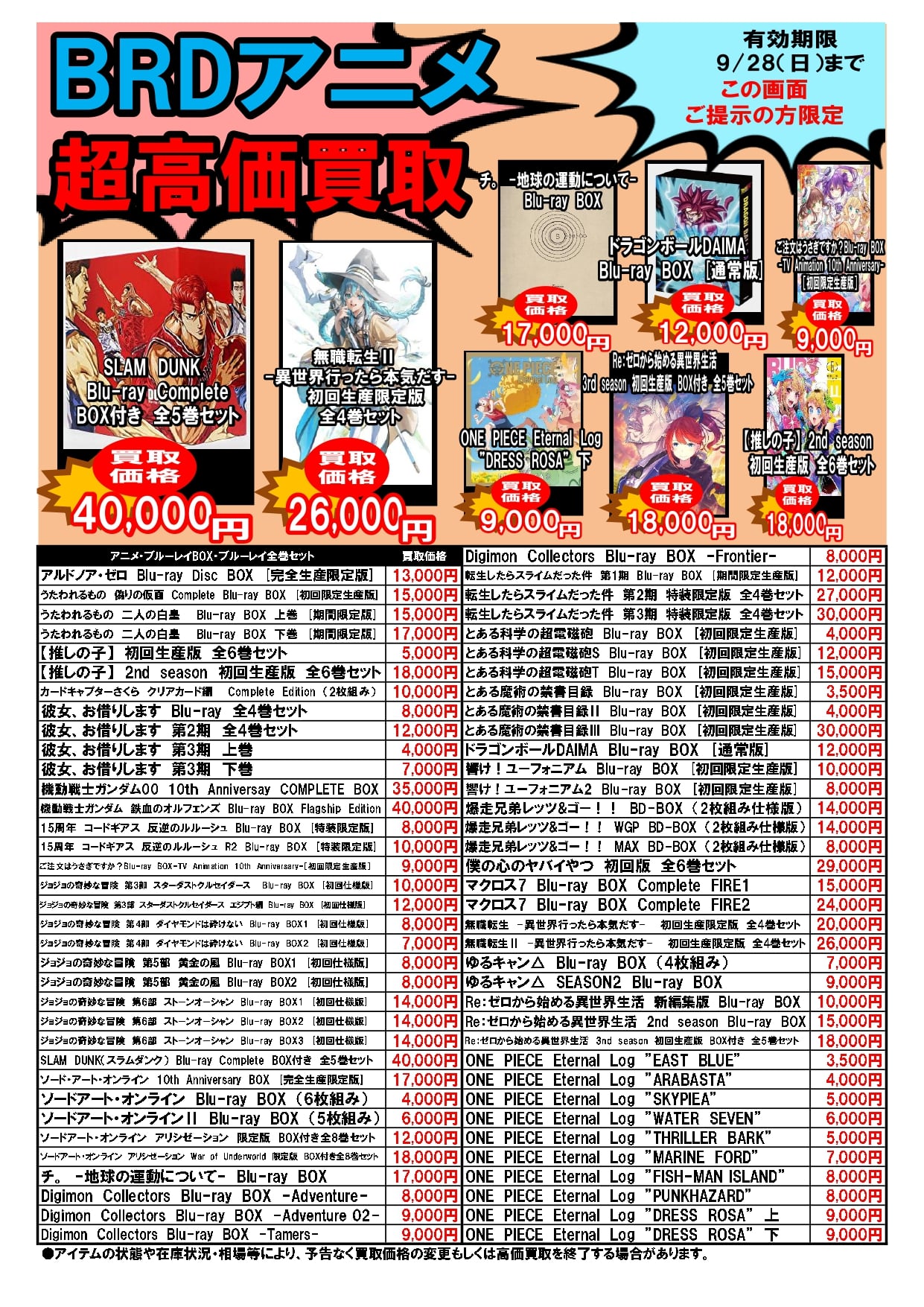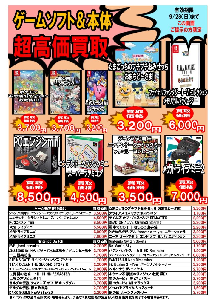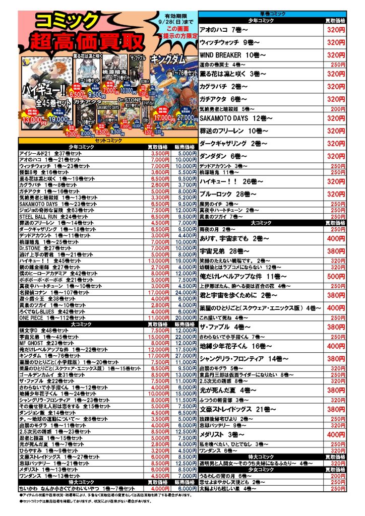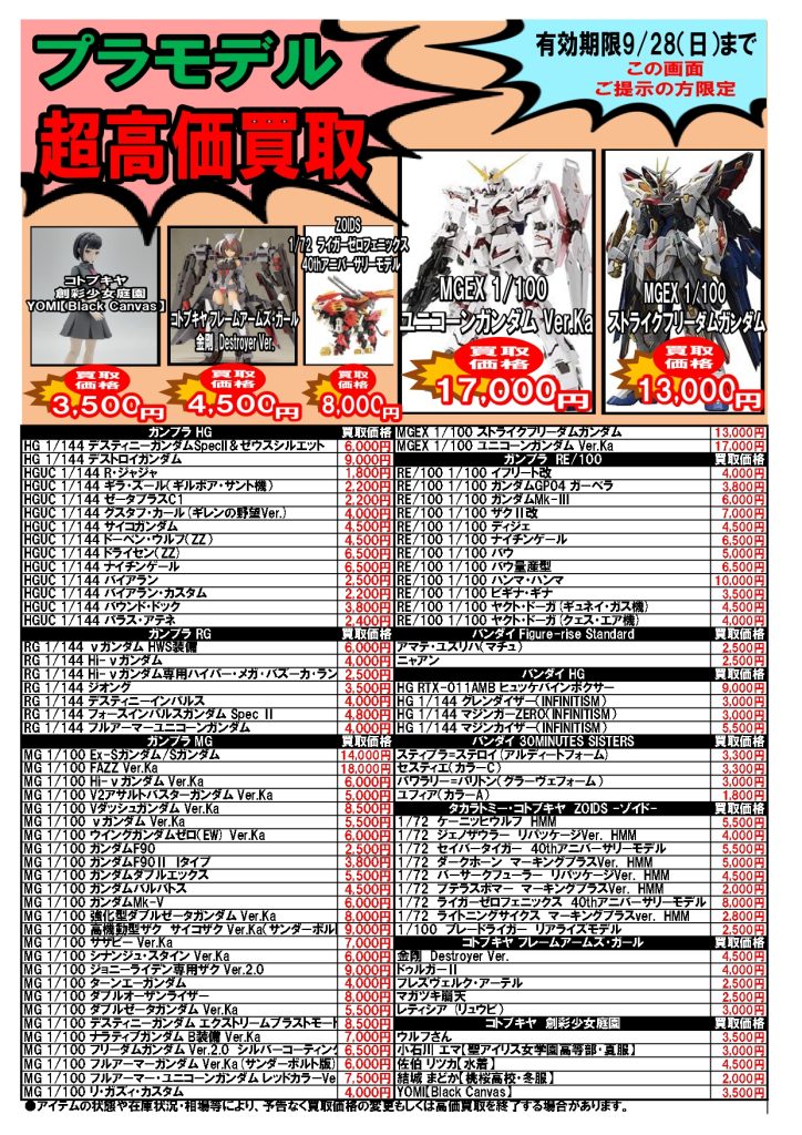 2025.09.22 ブックマーケット全店 買取情報 ⚡期間限定⚡圧倒的超高価買取情報9/22~9/28 今週の超高価買取情報はコチラ❕❕ プラモデル🤖も仲間入り! こちらのお知らせの画像か、 ブックマーケット各店Twitterの該当ツイートの画像を ご提示された方限定で、 特別価格にて買取をさせていただきます! 毎週月曜日更新ですのでお見逃しなく!!!!