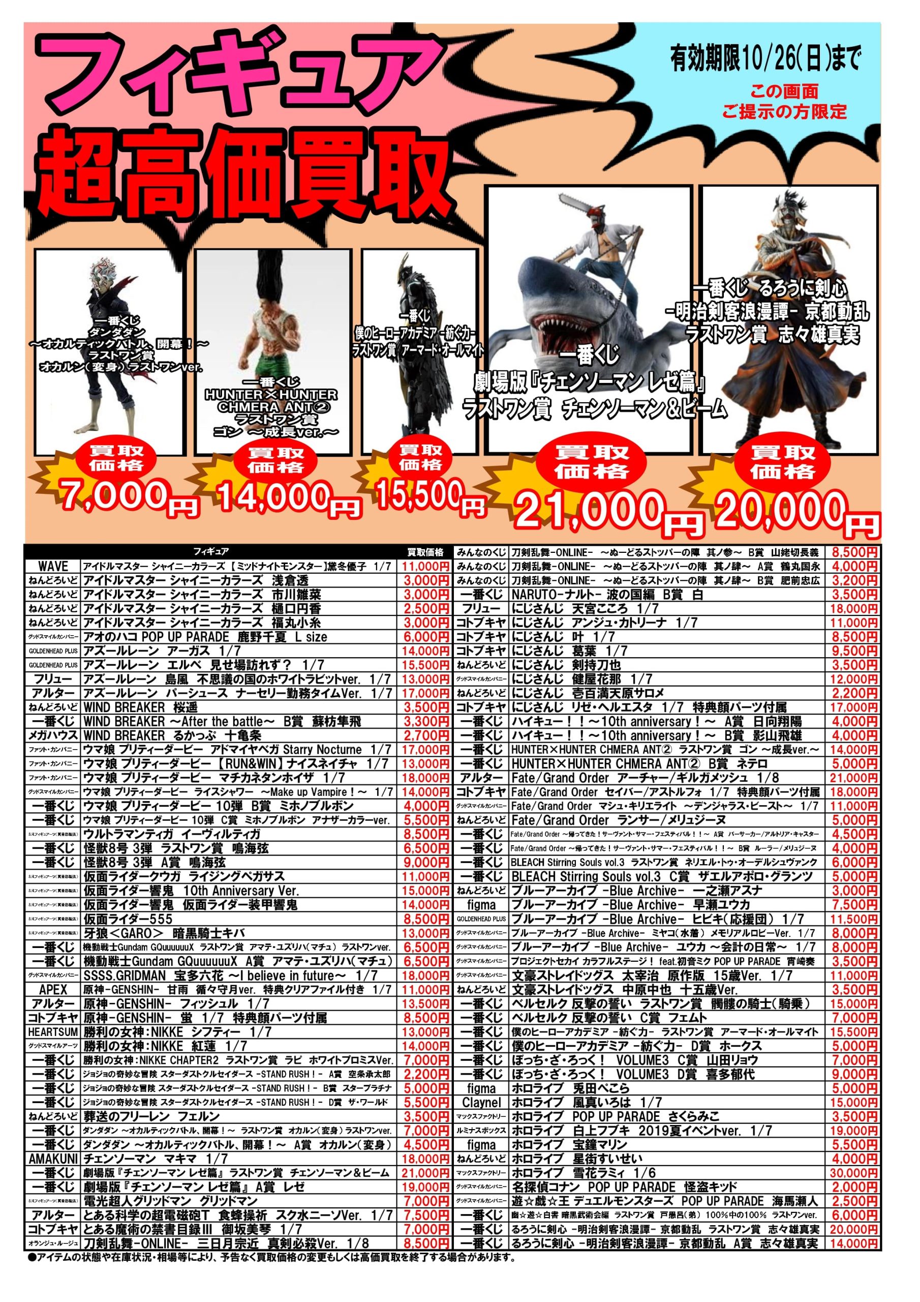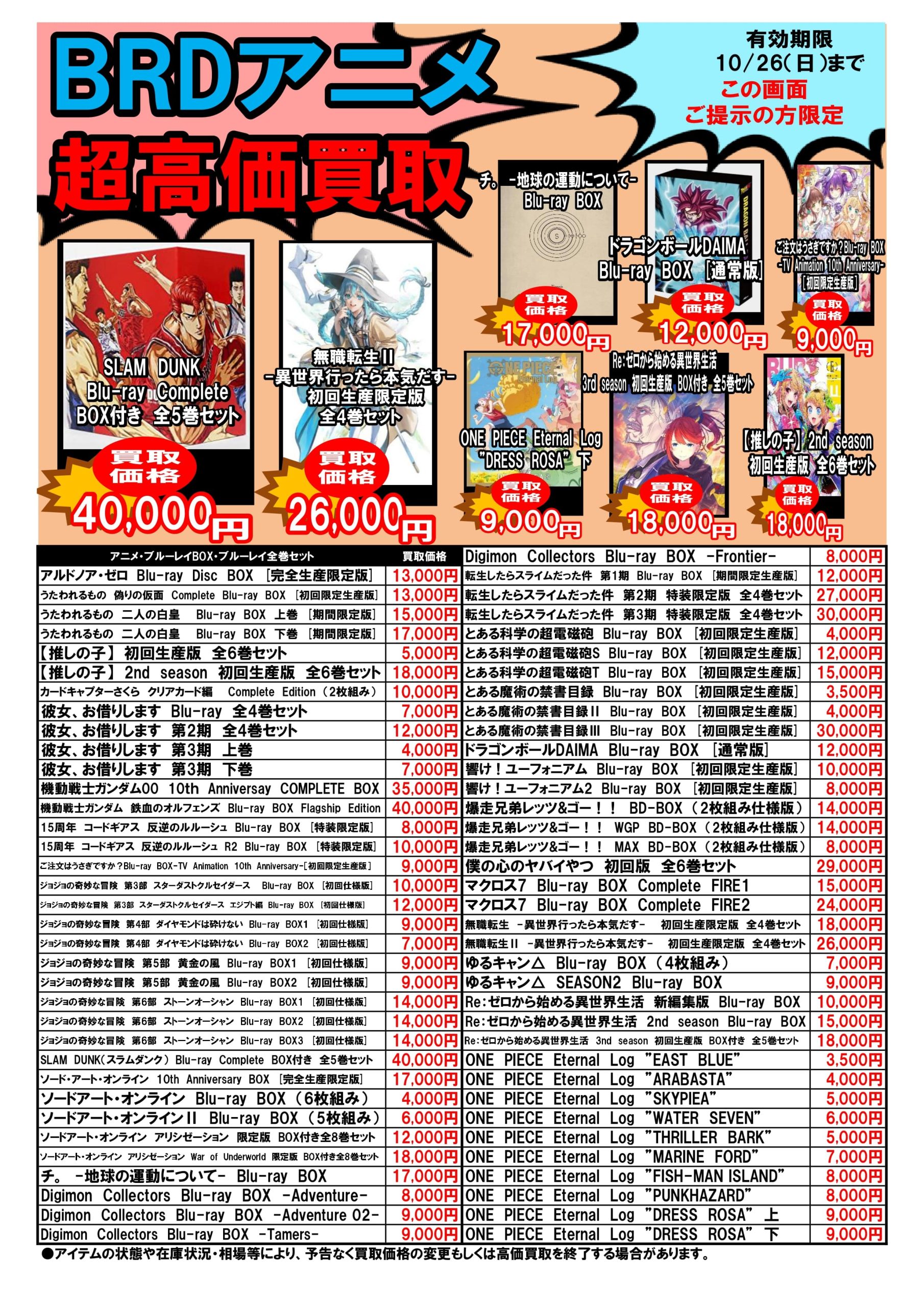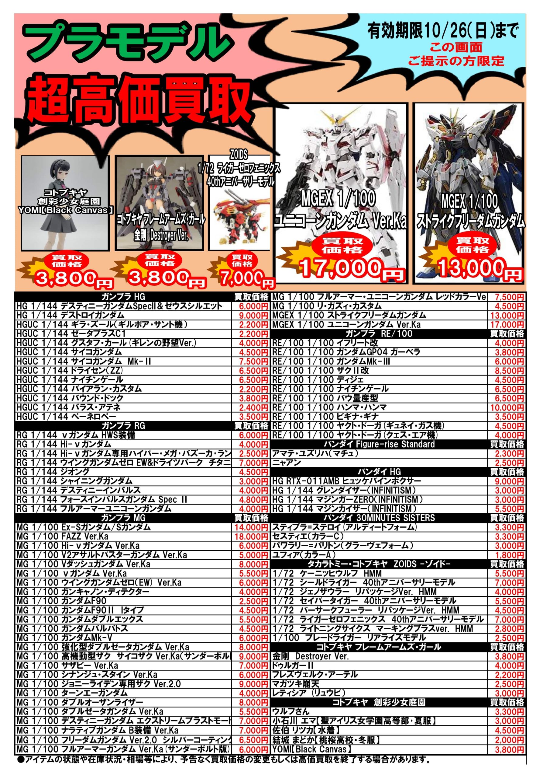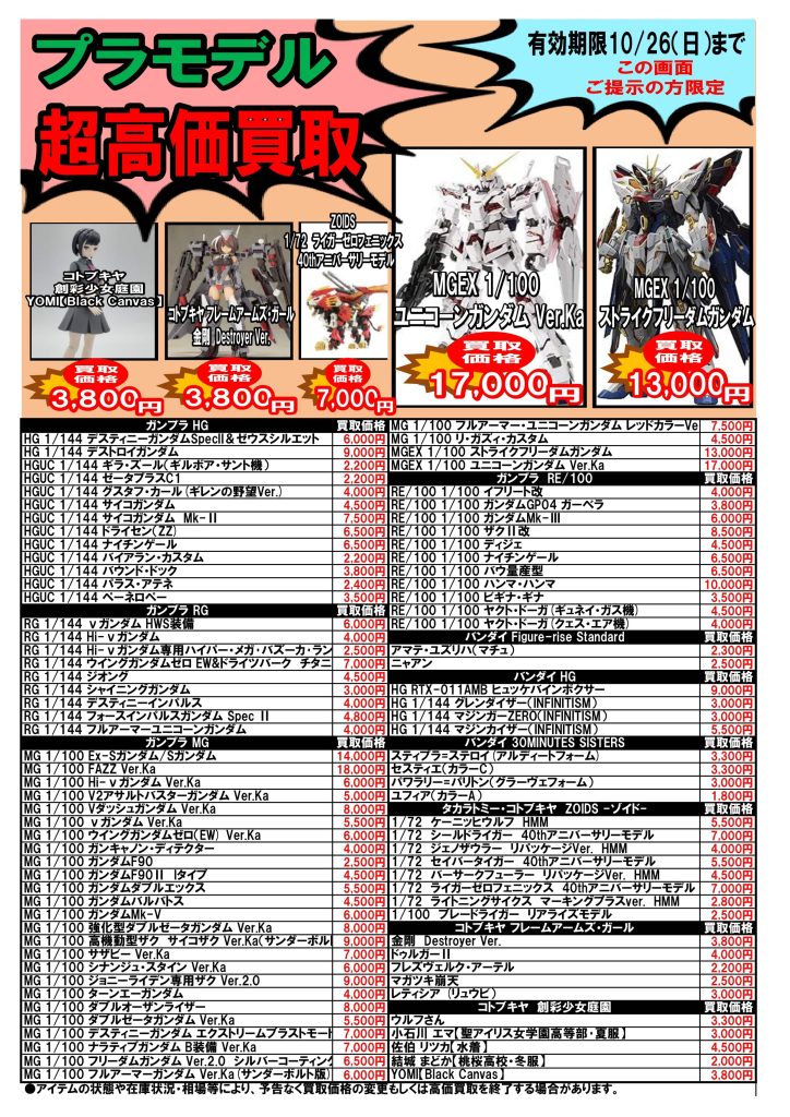 2025.10.20 ⚡期間限定⚡圧倒的超高価買取情報10/20~10/26 今週の超高価買取情報はコチラ❕❕ プラモデル🤖も仲間入り! こちらのお知らせの画像か、 ブックマーケット各店Twitterの該当ツイートの画像を ご提示された方限定で、 特別価格にて買取をさせていただきます! 毎週月曜日更新ですのでお見逃しなく!!!!
