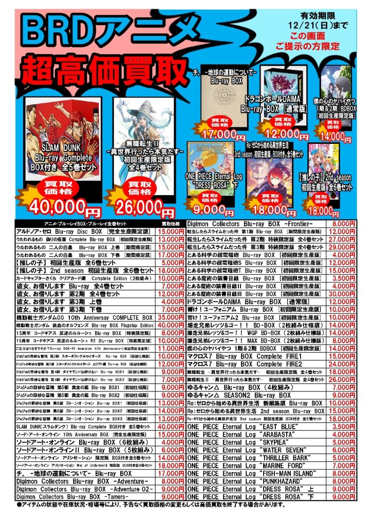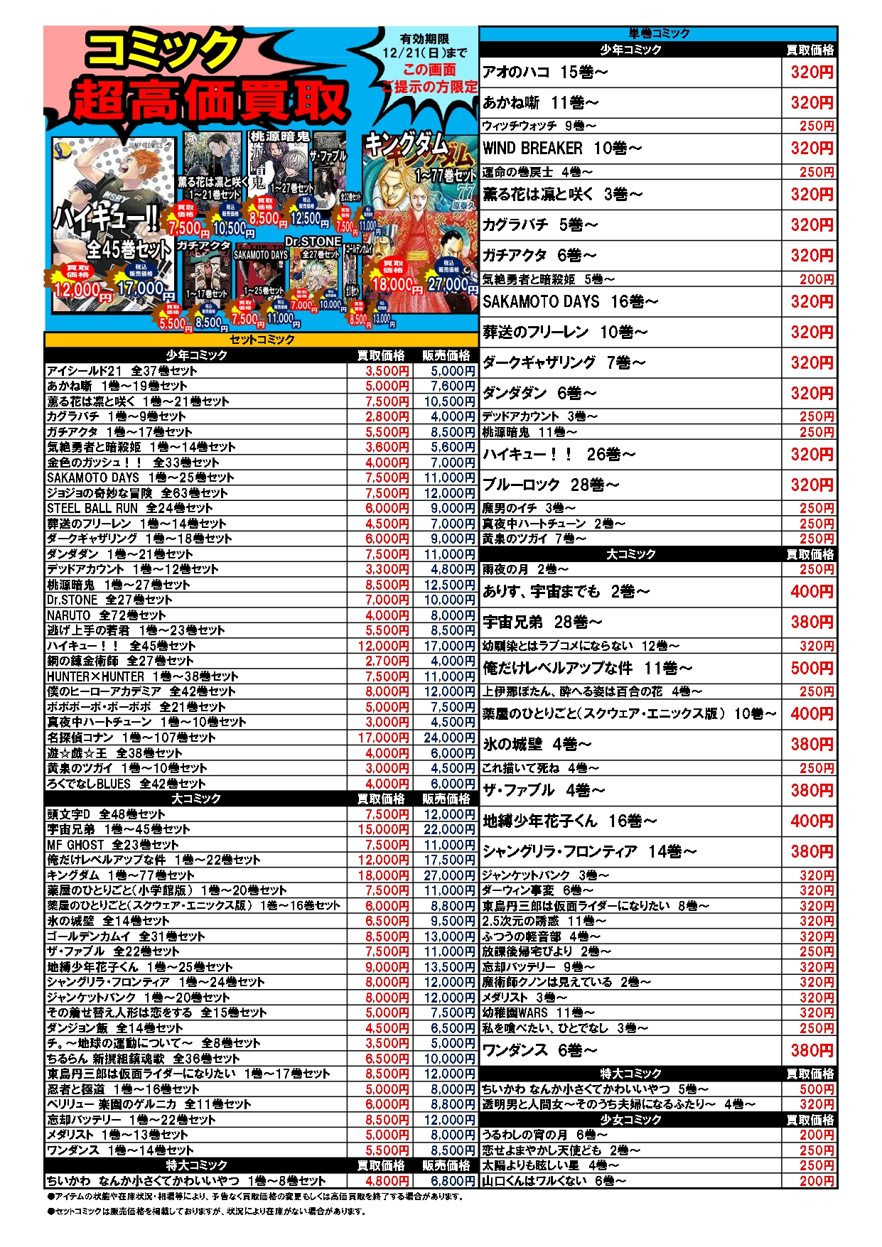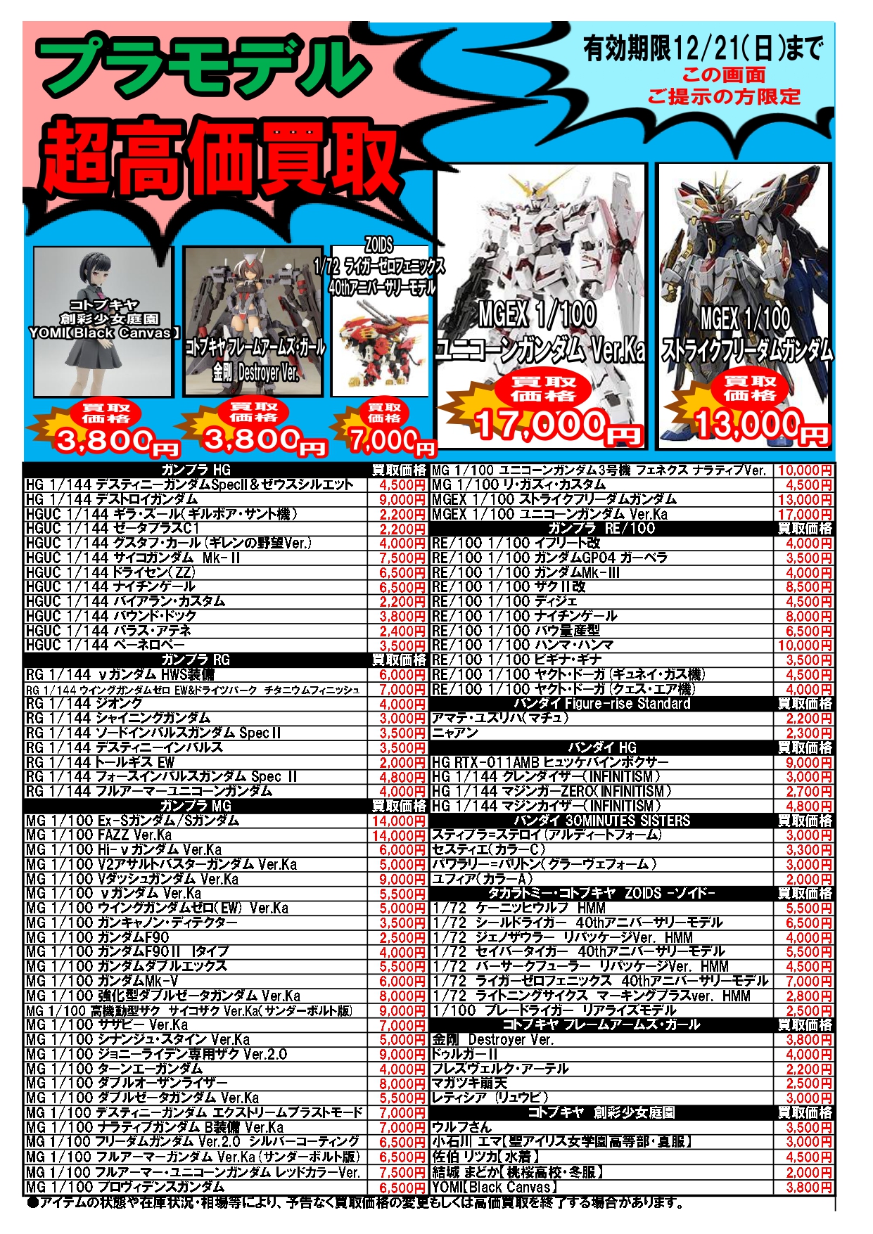2025.12.15 ブックマーケット全店 買取情報 ⚡期間限定⚡圧倒的超高価買取情報12/15~12/21 今週の超高価買取情報はコチラ❕❕ プラモデル🤖も仲間入り! こちらのお知らせの画像か、 ブックマーケット各店Twitterの該当ツイートの画像を ご提示された方限定で、 特別価格にて買取をさせていただきます! 毎週月曜日更新ですのでお見逃しなく!!!!