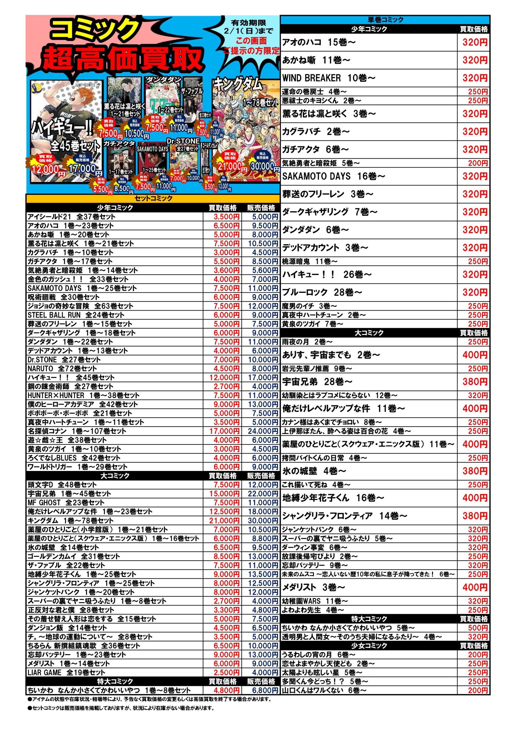 2026.01.26 ブックマーケット全店 買取情報 ⚡期間限定⚡圧倒的超高価買取情報1/26~2/1 今週の超高価買取情報はコチラ❕❕ プラモデル🤖も仲間入り! こちらのお知らせの画像か、 ブックマーケット各店Twitterの該当ツイートの画像を ご提示された方限定で、 特別価格にて買取をさせていただきます! 毎週月曜日更新ですのでお見逃しなく!!!!